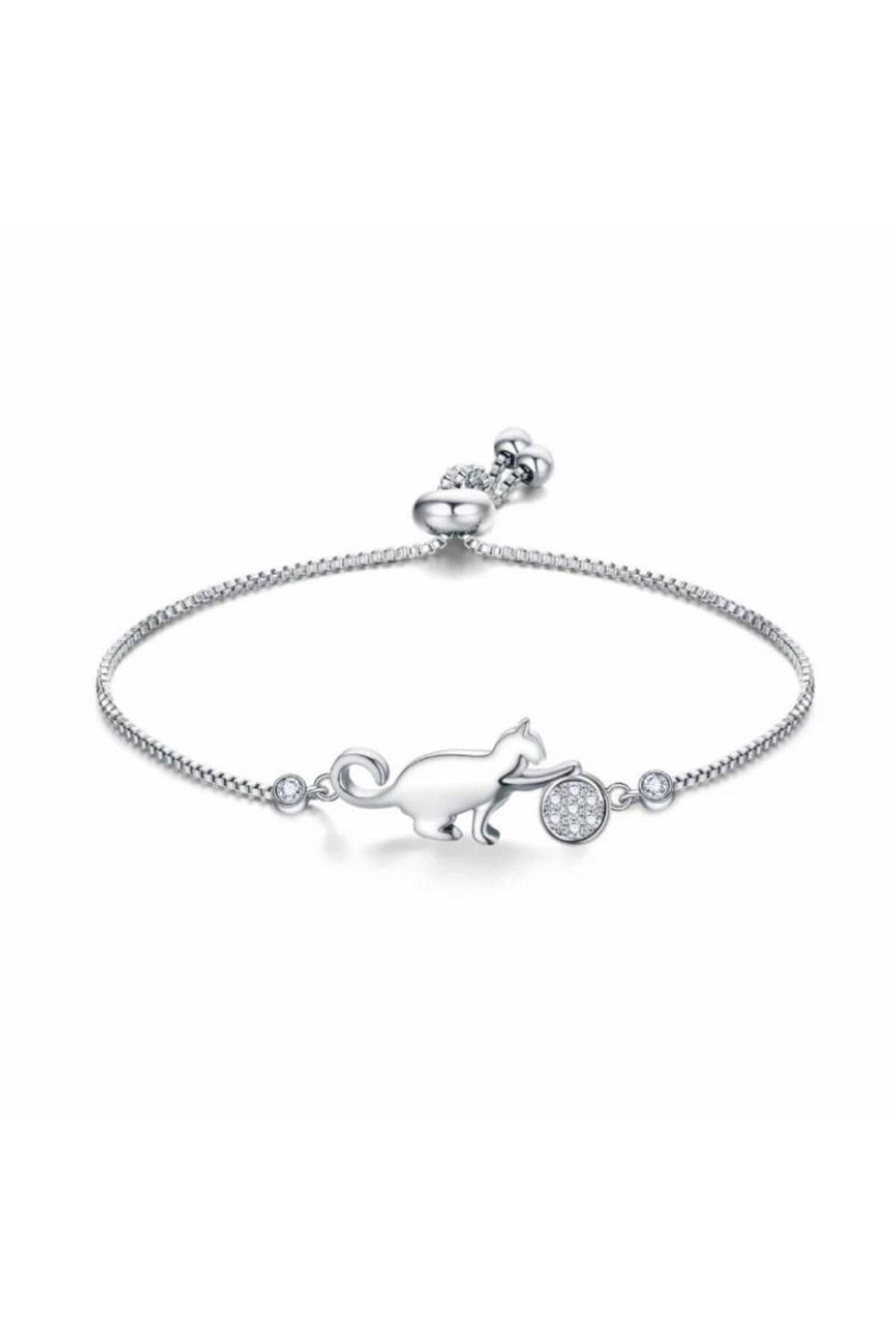 925 Ayar Asansörlü Boyu Ayarlanabilir Kedi Figürlü Taşlı Gümüş Bileklik