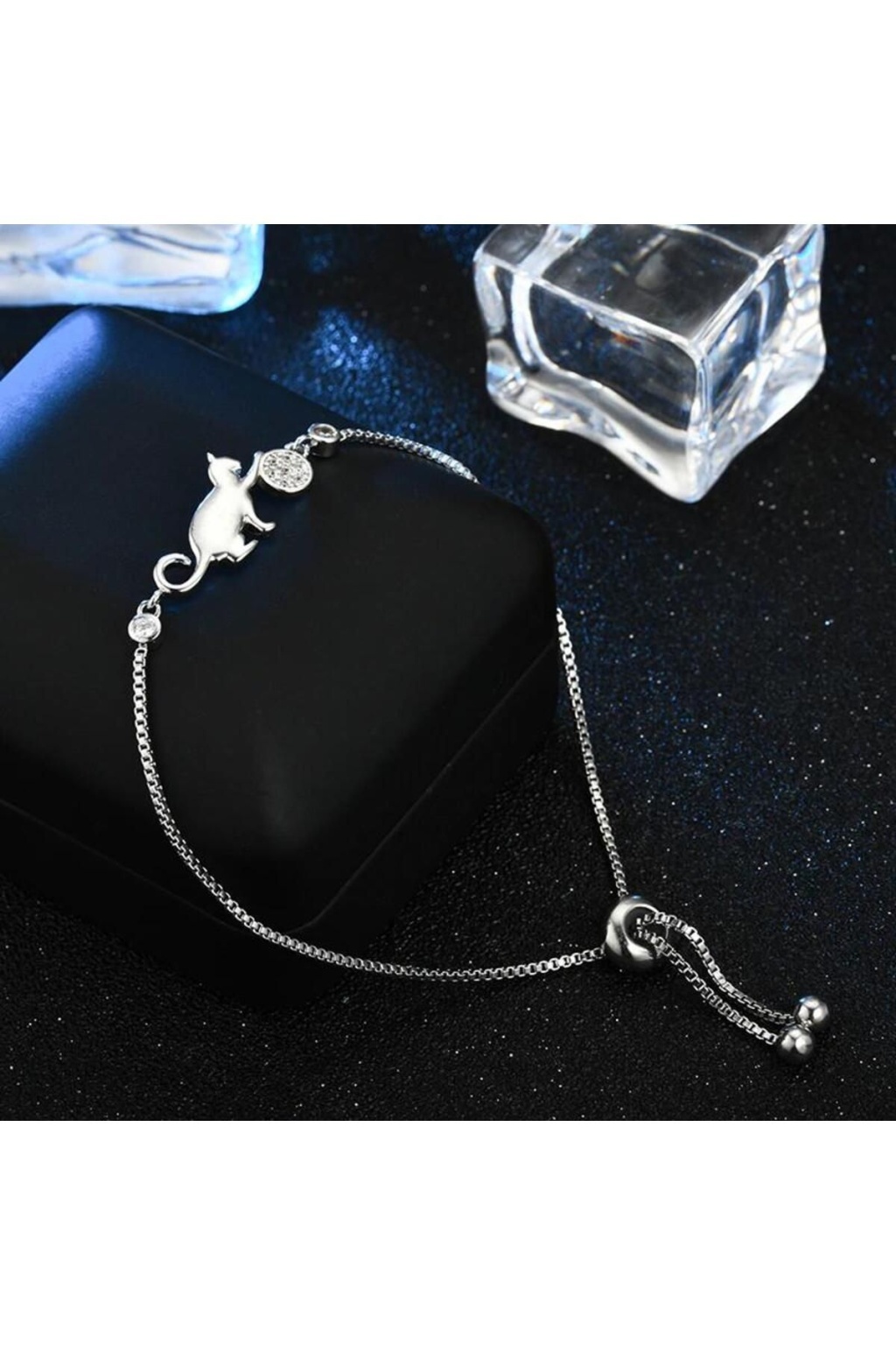 925 Ayar Gümüş Kedi Patisi Figürlü Ayarlanabilir Kadın Bileklik Zincir Bilezik
