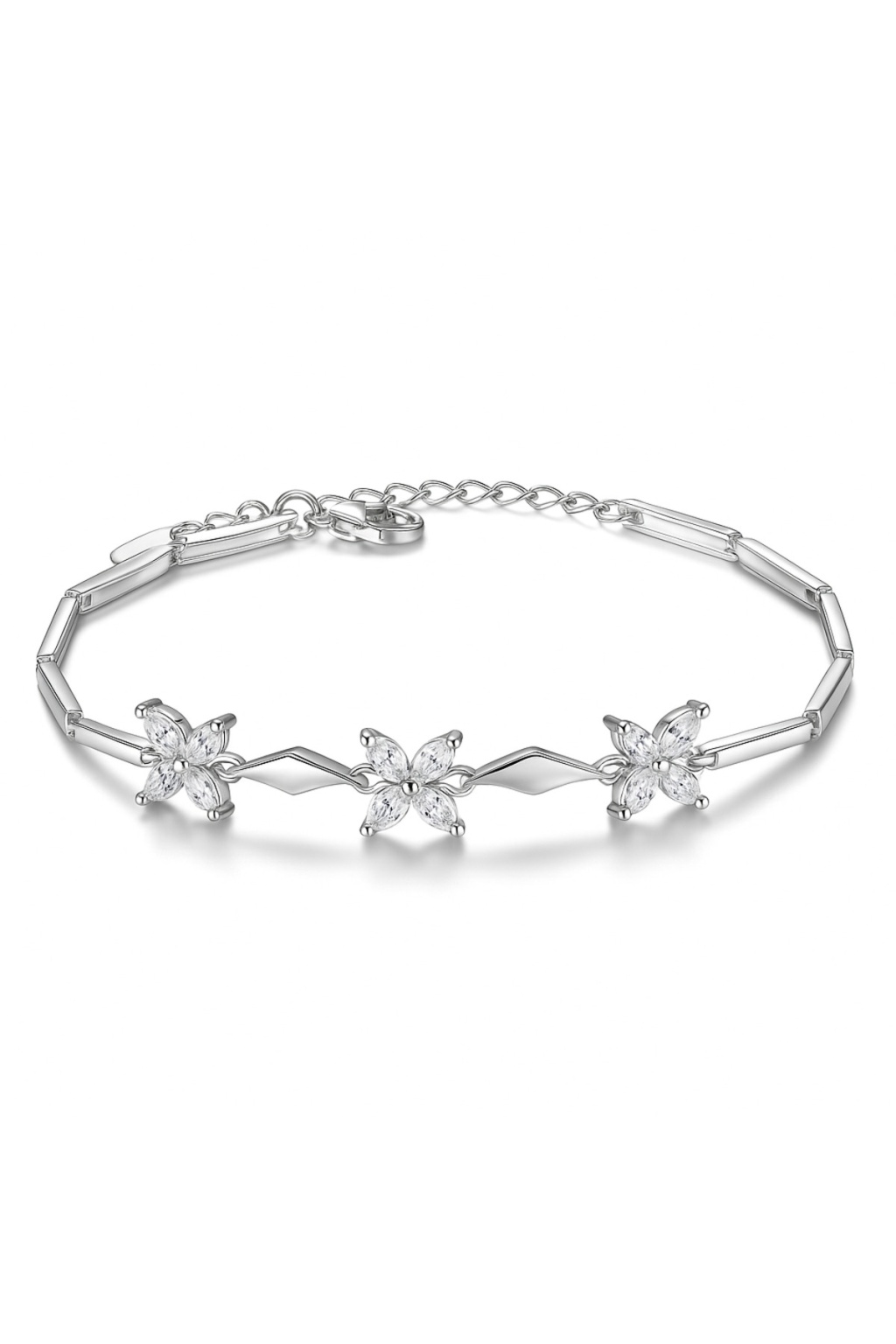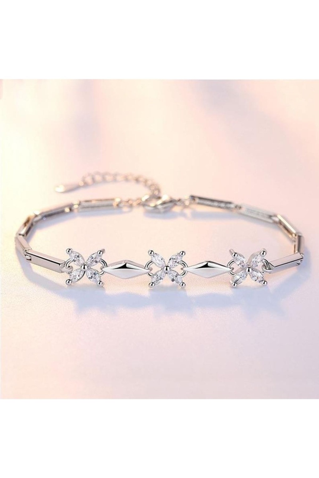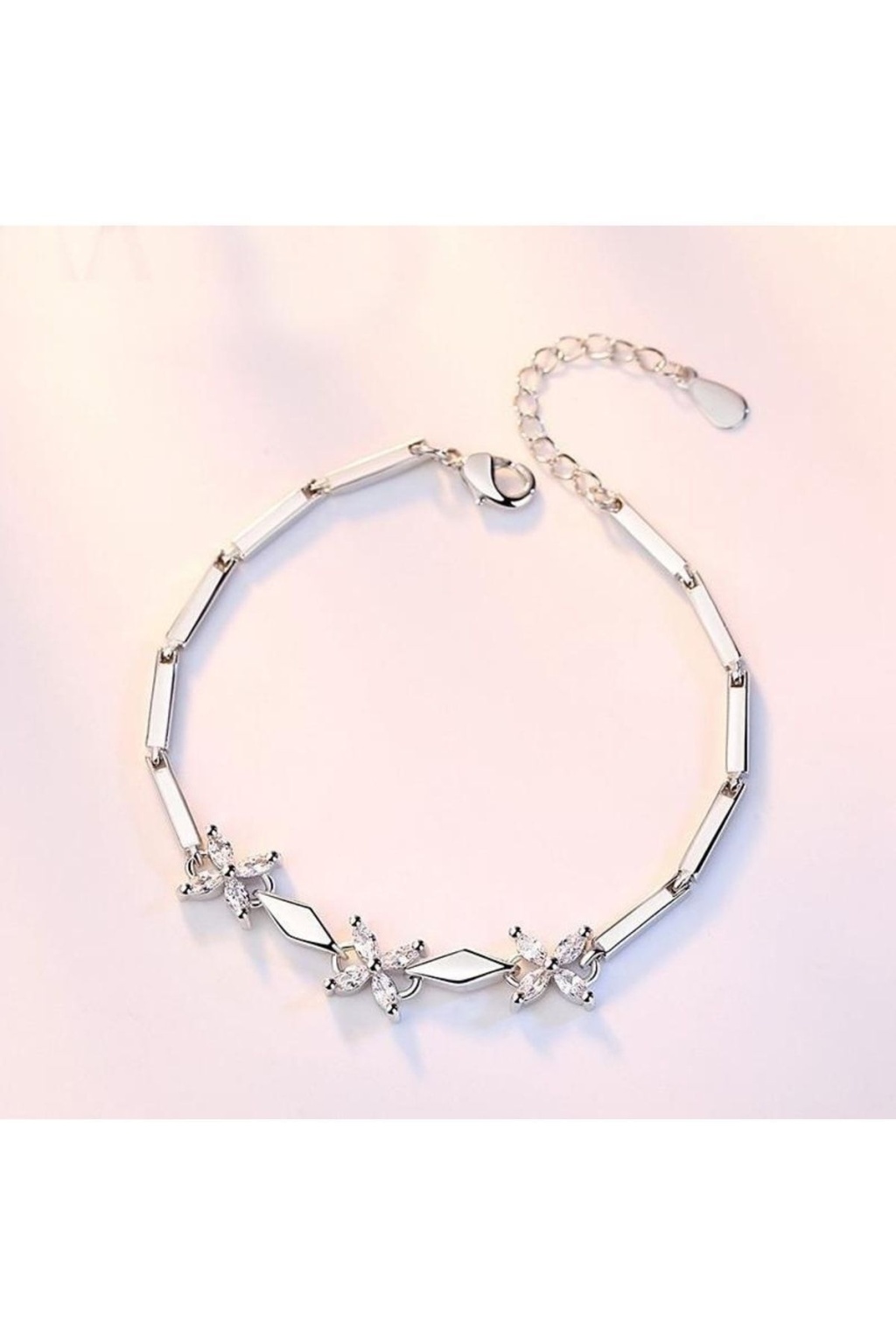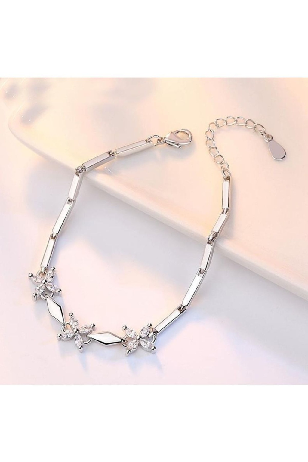 925 ayar gümüşten üretilen ayarlanabilir çiçek motifli bileklik, zarif ve şık tasarımıyla günlük kullanımda ve özel günlerde stilinizi tamamlar.; Parlak taş detayları ışıltılı bir görünüm sunar.; Sevgiliye, eşe, anneye hediye olarak ideal ve uzun ömürlü bir aksesuardır.; Ayar kısmı sayesinde her bileğe rahatlıkla uyum sağlar.; Alerji yapmayan kaliteli gümüş malzemedir.