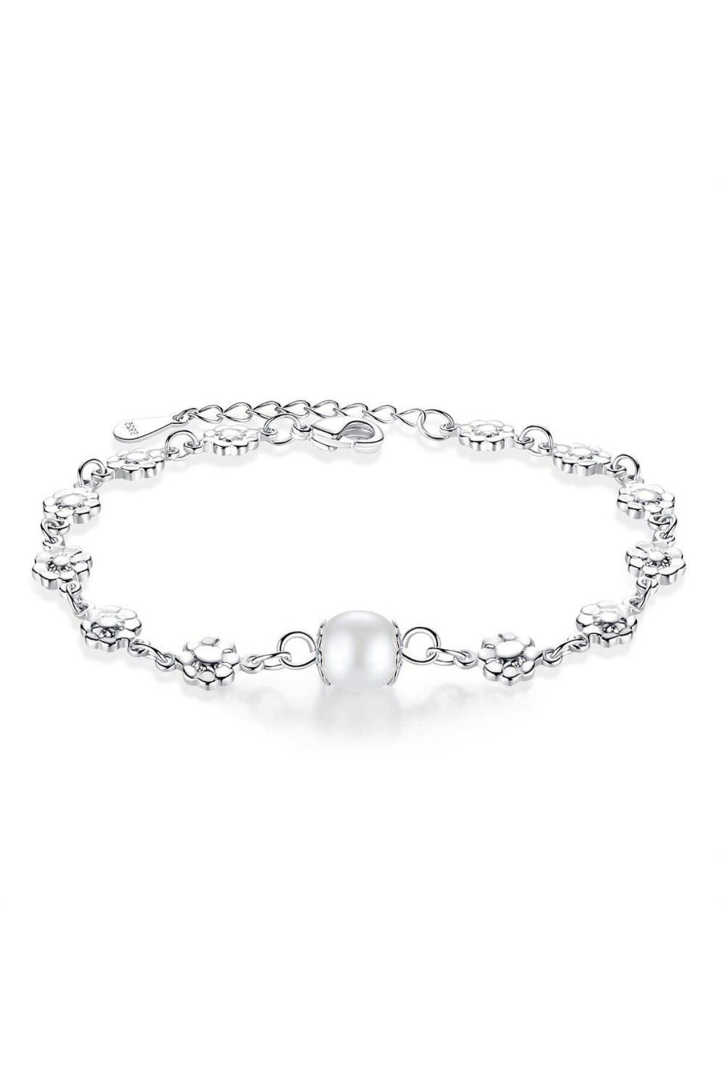 925 Ayar Ayarlanabilir Çiçek Tek İnci Tasarım Kadın Gümüş Bileklik • 925 Ayar Natural Gümüş • Kaplama, Rodyum, Nikel İçermez • Doğa Dostu Yöntemlerle Üretilmiştir • İthal Ürün Yüksek Kalite Standardı • Lütfen dikkat! Natürel gümüşün en büyük özelliği hava ile temas ettiğinde oksitlenip kararmasıdır. ; Doğayı ve sizleri önemsiyoruz, bu yüzden ürünlerimize kaplama, nikel ve başka herhangi bir kimyasal bileşen uygulanmamaktadır. ; Bileklik ve charm’larınızı belli aralıklarla pamuklu bez ile siliniz, sildikten sonra ilk günkü gibi parlak ve temiz haline dönecektir.;