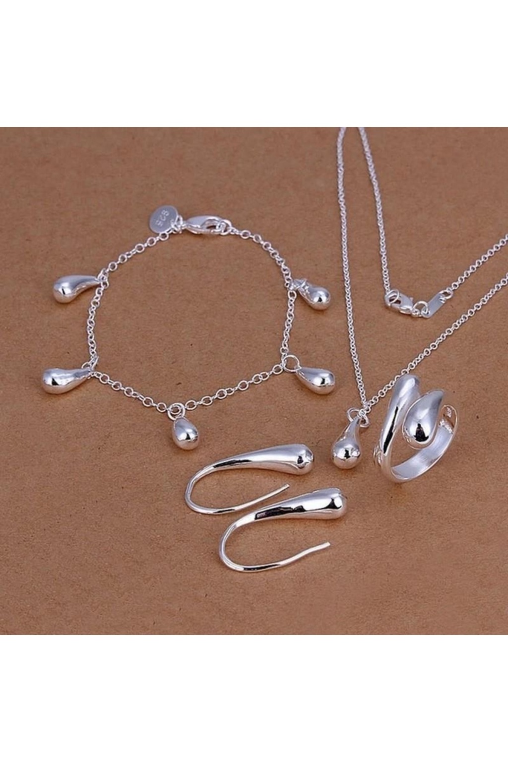925 Ayar Sevgililer, Anneler Günü Hediyesi Küp Model Kolye Küpe Bilezik Gümüş Takı Seti