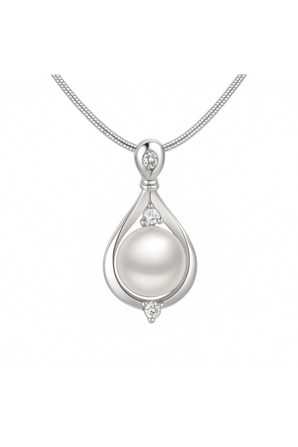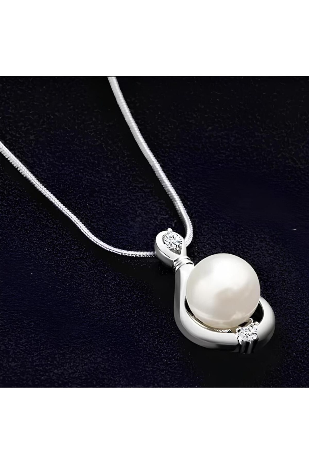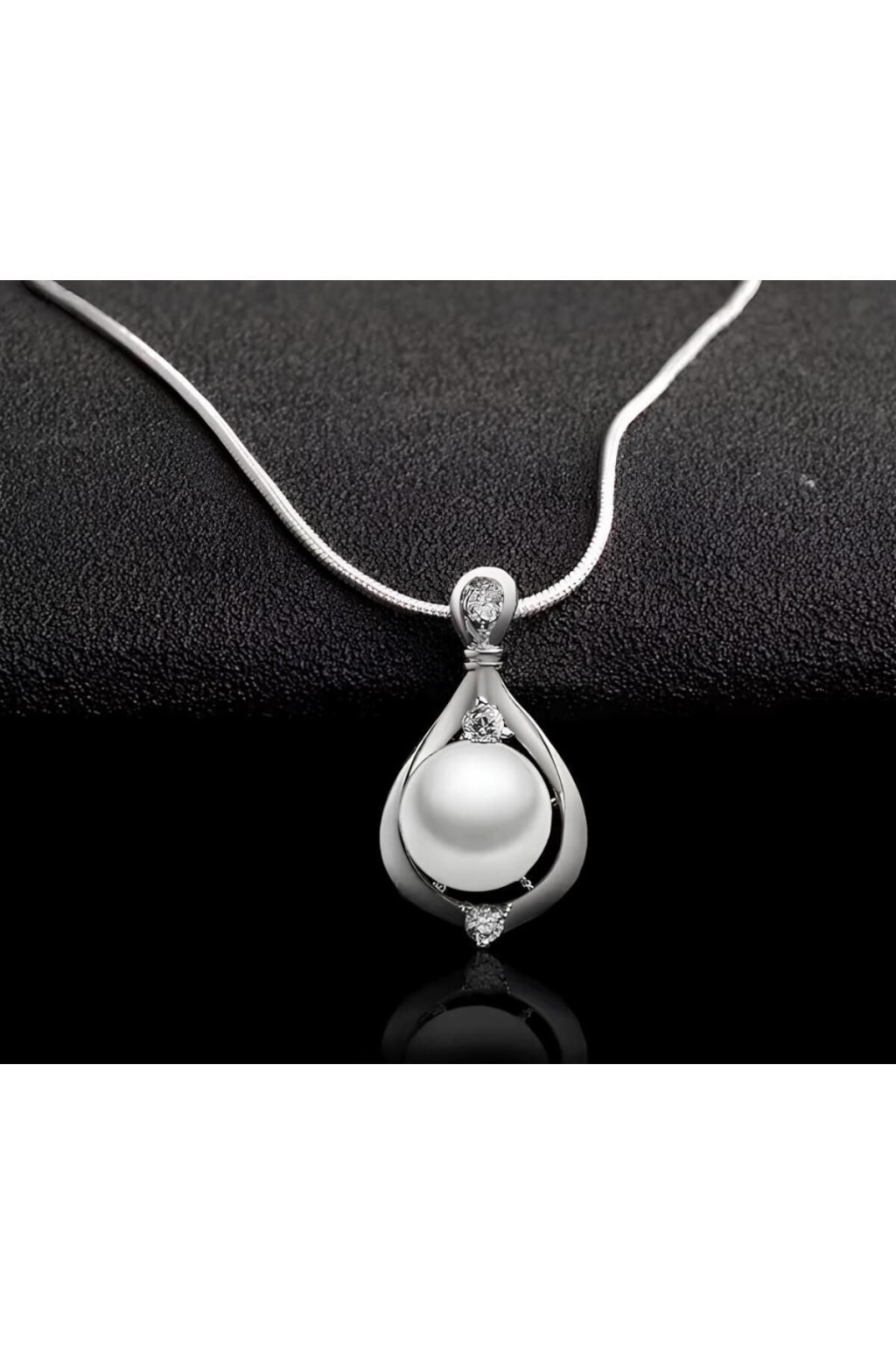 925 Ayar Zincirli Damla Tasarım İnci Taşlı Gümüş Kaplama Kadın Kolye Hediyelik