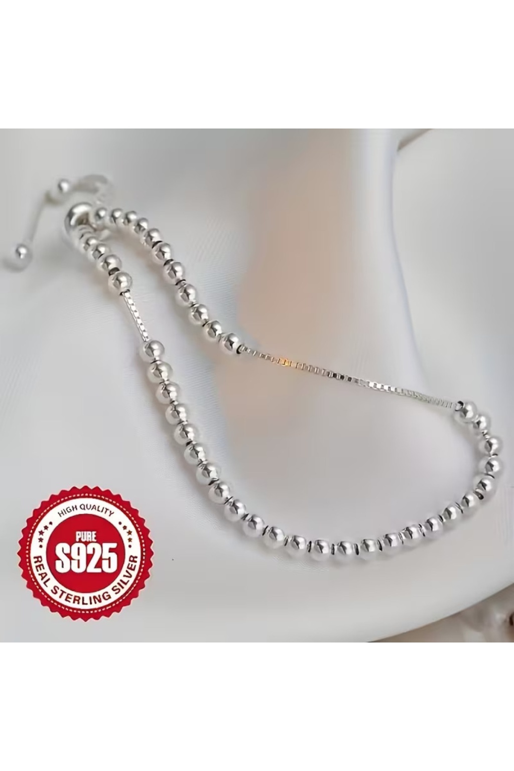 Sade boncuklu tasarımıyla öne çıkan 925 ayar gümüş bileklik, ayarlanabilir zincir mekanizması sayesinde farklı bilek ölçülerine uyum sağlar. Minimal ve zamansız formu sayesinde tek başına veya diğer bilekliklerle birlikte kullanılabilir.