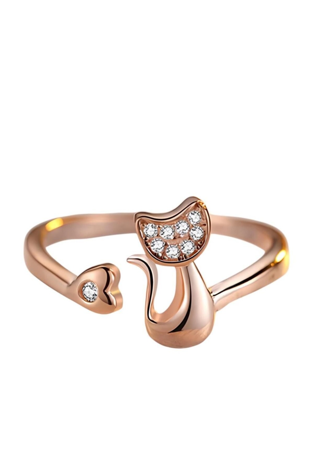 925 Ayar Gümüş Boyutlanabilir Sevimli Kedi Kadın Yüzük