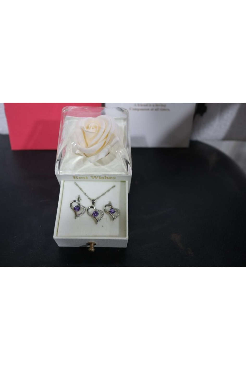 925 Ayar Gümüş Kalp İçinde Zirkon Taşlı Kolye Küpe Seti Sevgili Cüzdanı Sevgililer Günü Hediyelik