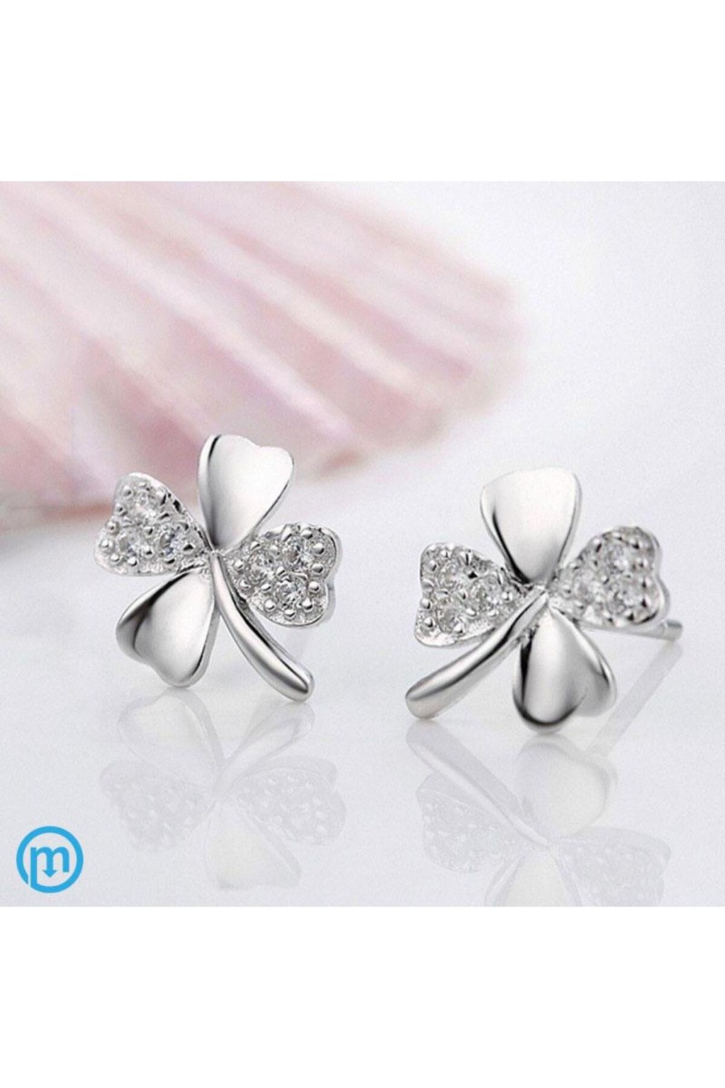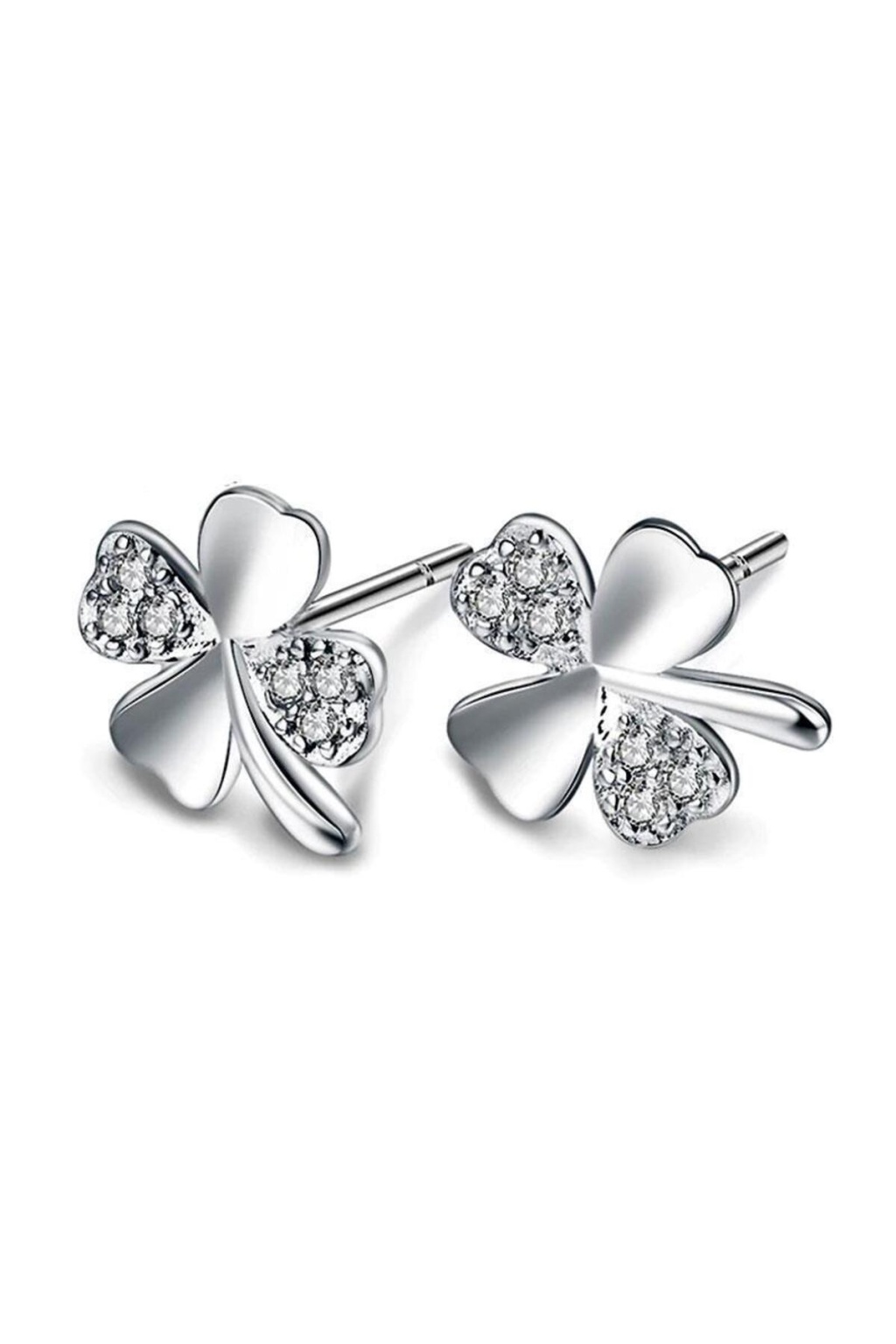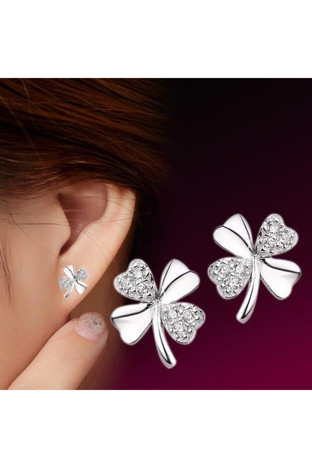 4 Yapraklı Yonca Gümüş Kadın Saplama Küpe