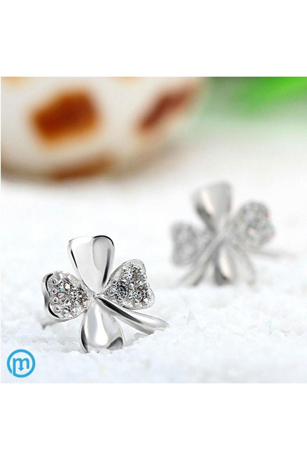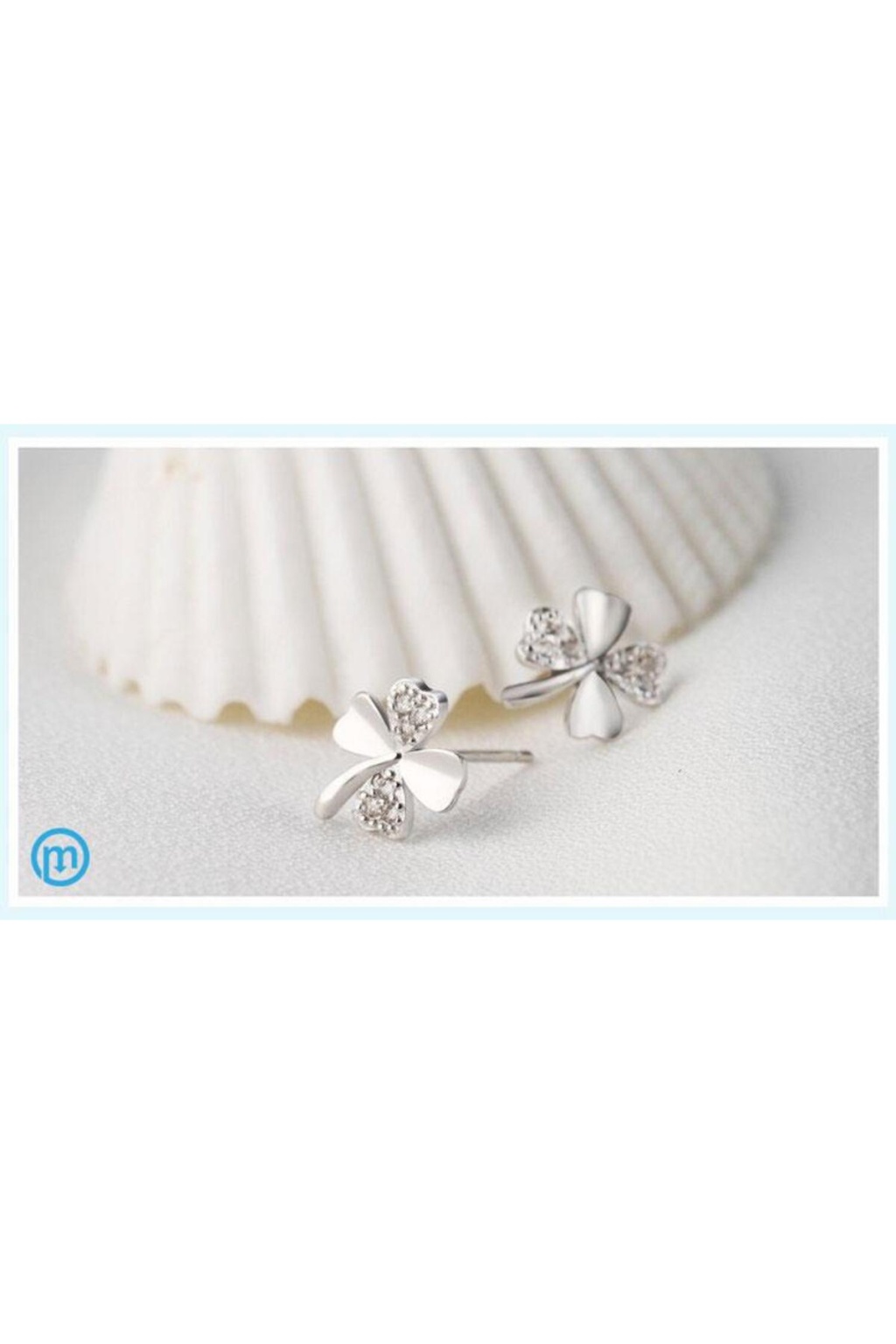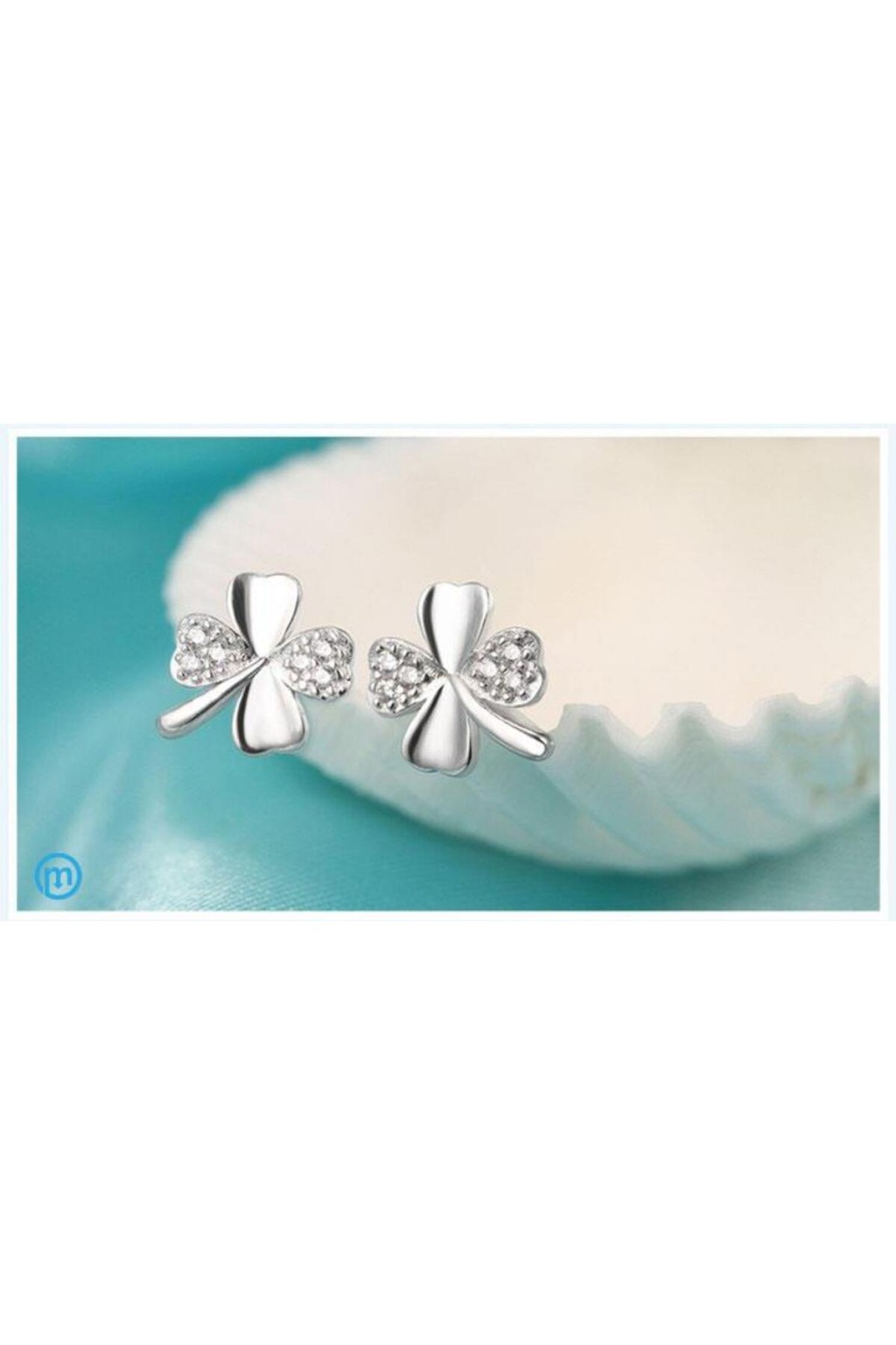 4 Yapraklı Yonca Gümüş Kadın Saplama Küpe