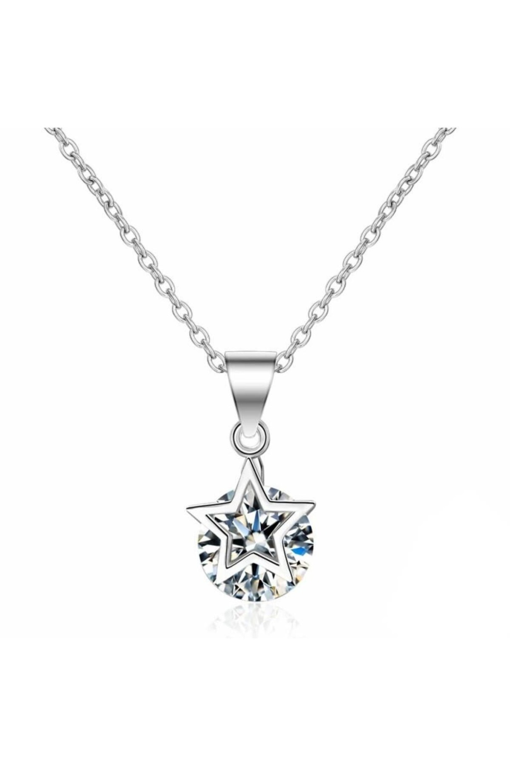 925 Ayar Yıldız Figürlü Zincirli Taşlı Gümüş Kolye Hediyelik