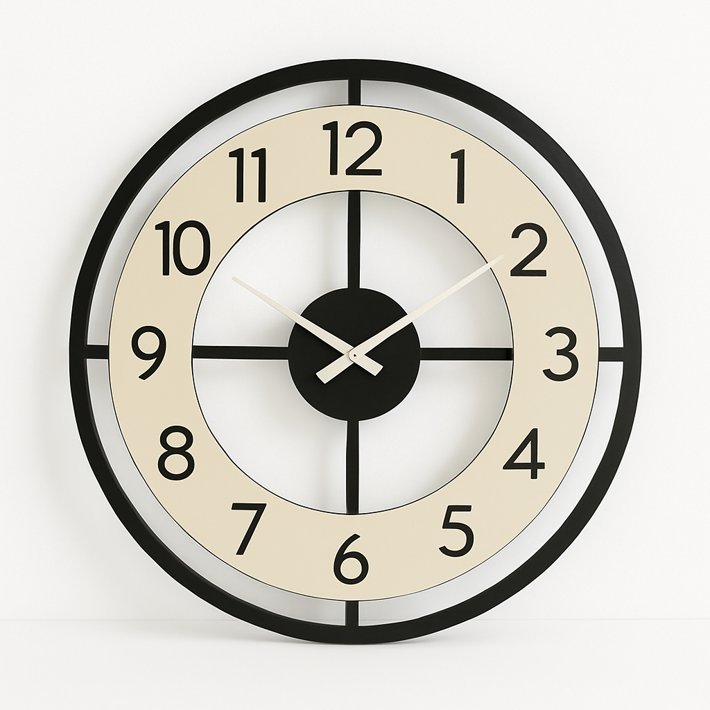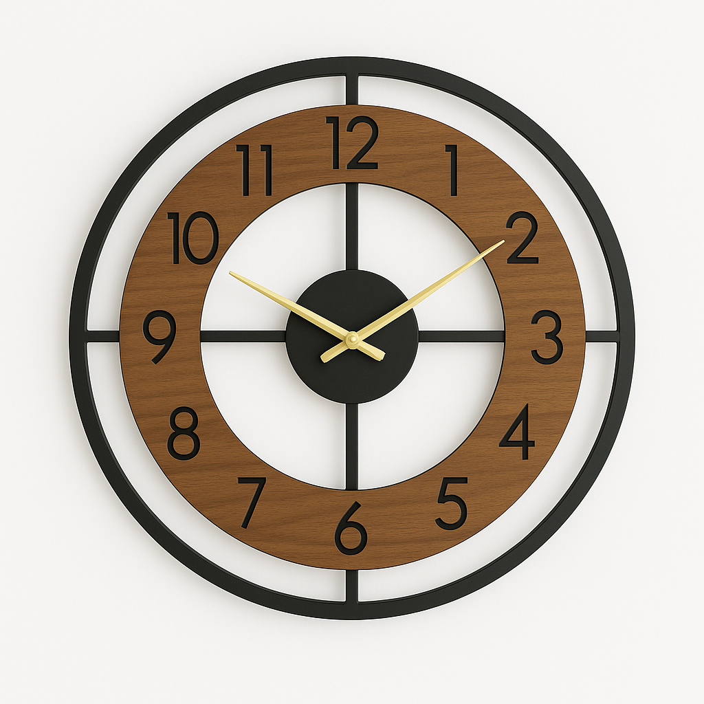 Dekoratif Ahşap Siyah Gold Duvar Saati 40 cm – Modern Ev Hediyelik Saat