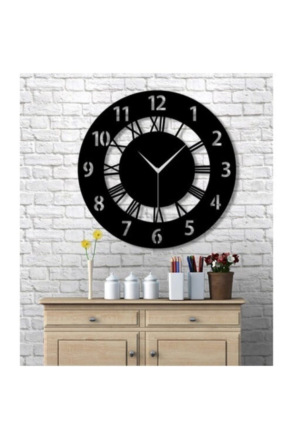 Ahşap Siyah Ceviz Desenli Sessiz Duvar Saati 40 cm Dekoratif Hediyelik