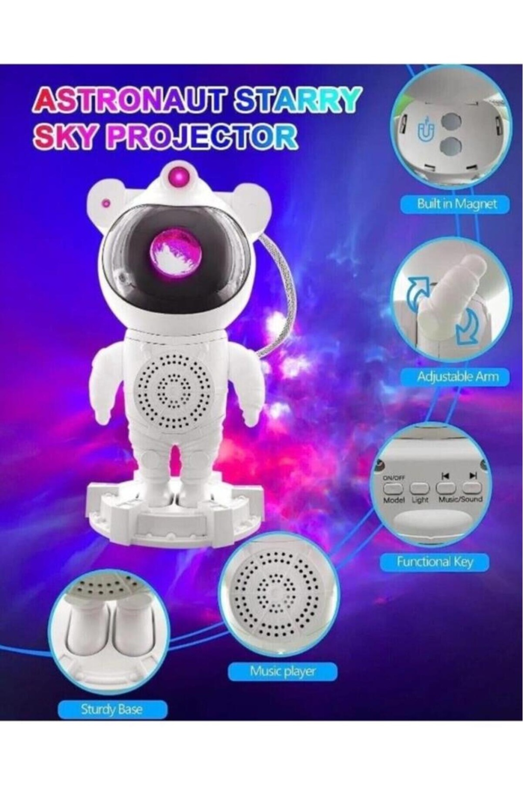 Ürün Bluetoothludur.Telefon ile bağlantı yapılıp müzik dinlenebilir.Kendi içerisinde müzik mevcuttur kuş cıvıltısı dalga sesi sömine ateş sesi uyku müziği nebula yıldız ve ay yansıtmalıdır.Ana malzeme: ABS + PC + PVC + TPEÜrün boyutu: 120*113*228mmPaket boyutu: 123*115*240mmÜrün brüt ağırlık: 655g ÜrününNet ağırlığı: 487gDış kutu boyutu: 505*390*485mmAnma gerilimi: 5V/1AAnma gücü: 5WGüç modu: USB kablosu güç kaynağına bağlıStandart ürün konfigürasyonu:Astronaut projeksiyon lambası * 1 Taban * 1USB güç kablosu * 1İngilizce eğitimi * 1Uzaktan kumanda * 1(2 No.pil gereklidir, kutuda pil hariçtir.