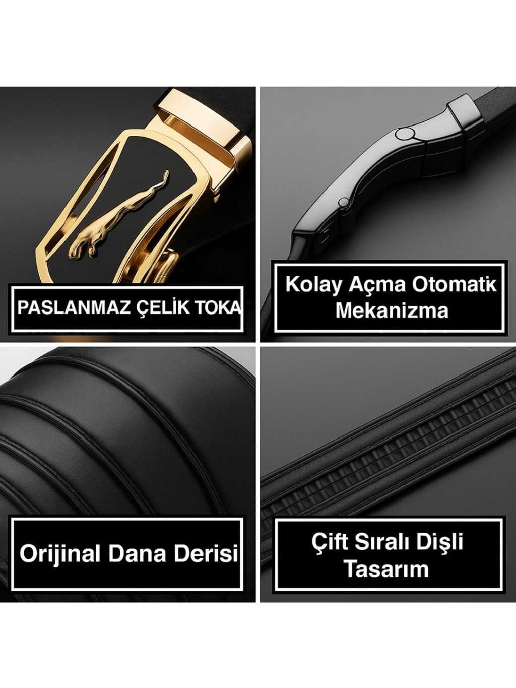 Premium Raylı Paslanmaz Çelik Toka Hakiki Deri Otomatik Erkek Kemer Lüks Hediyelik