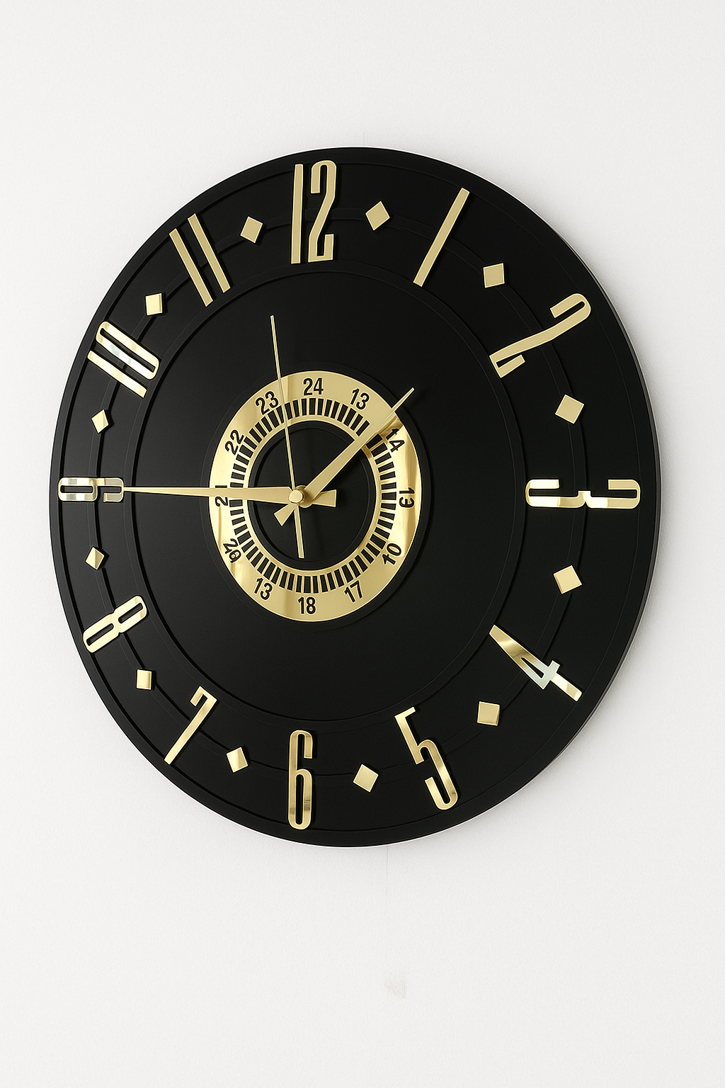 Dekoratif Ahşap Siyah Gold Duvar Saati 40 cm – Modern Ev Hediyelik Saat