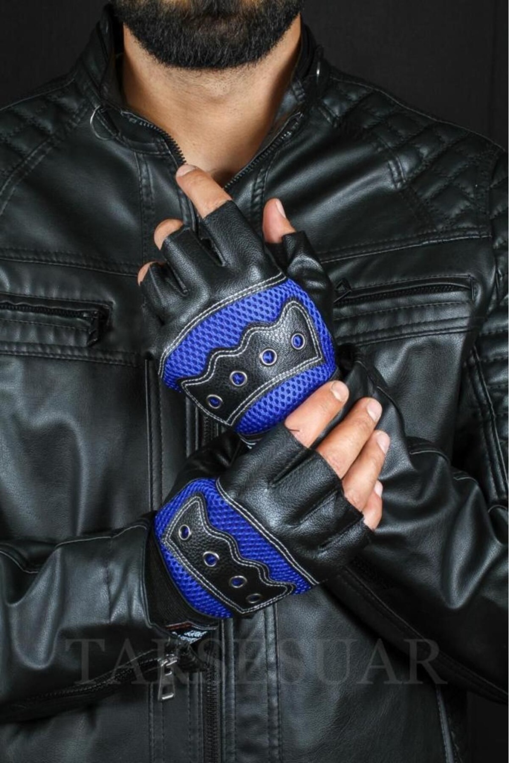 Erkek Kesik Deri Eldiven Fileli Tasarım Cırrtcırtlı Ayarlanabilir Beden