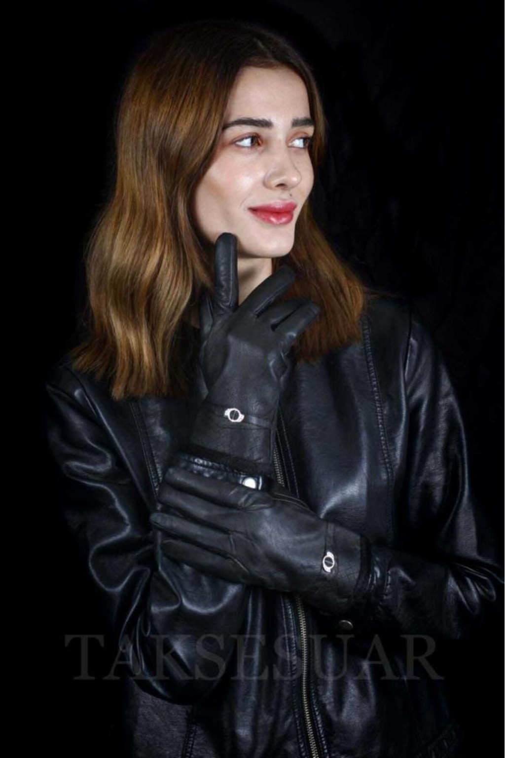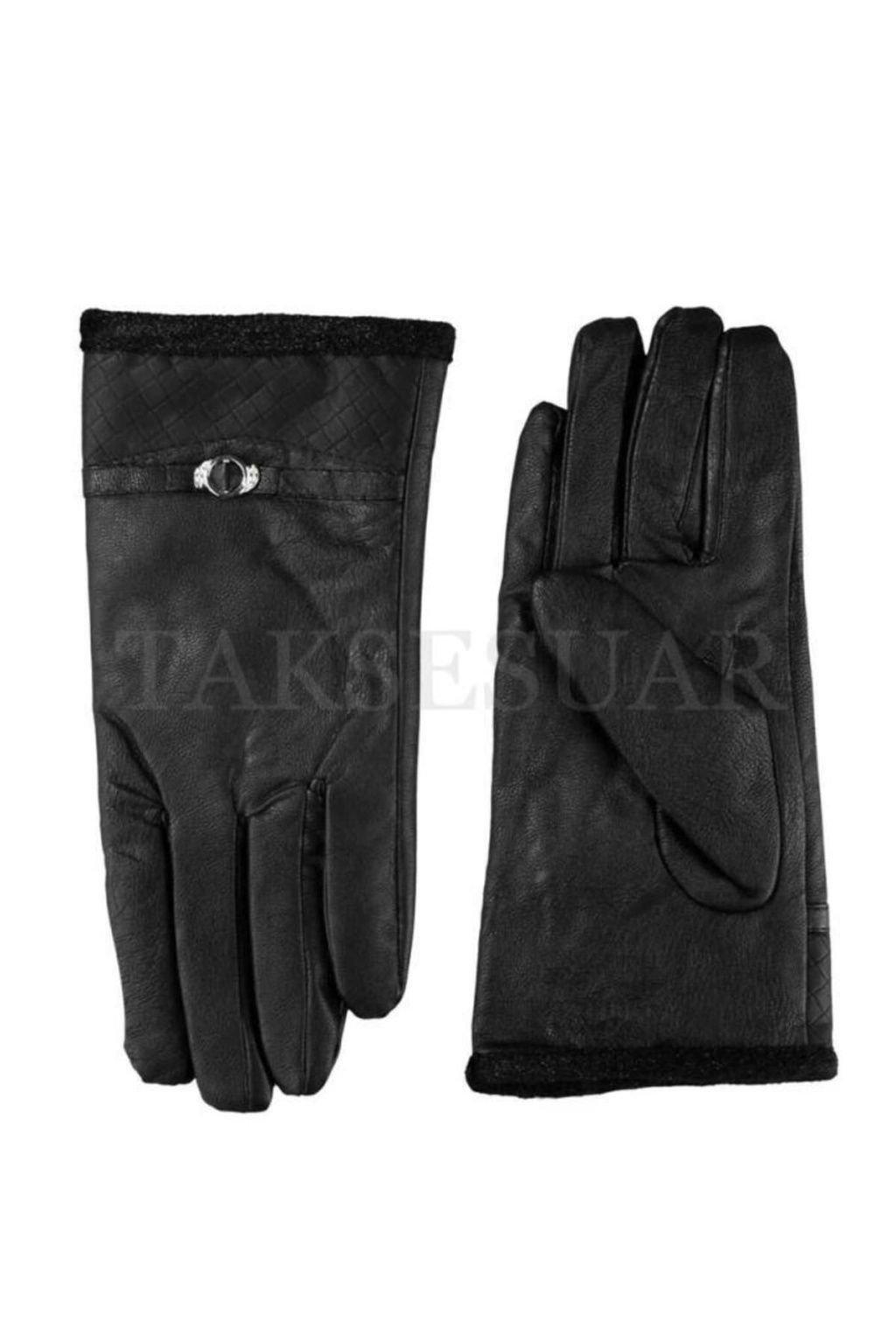 Kadın Eldiven Deri Vinleks Mat Renk Metal Baskılı