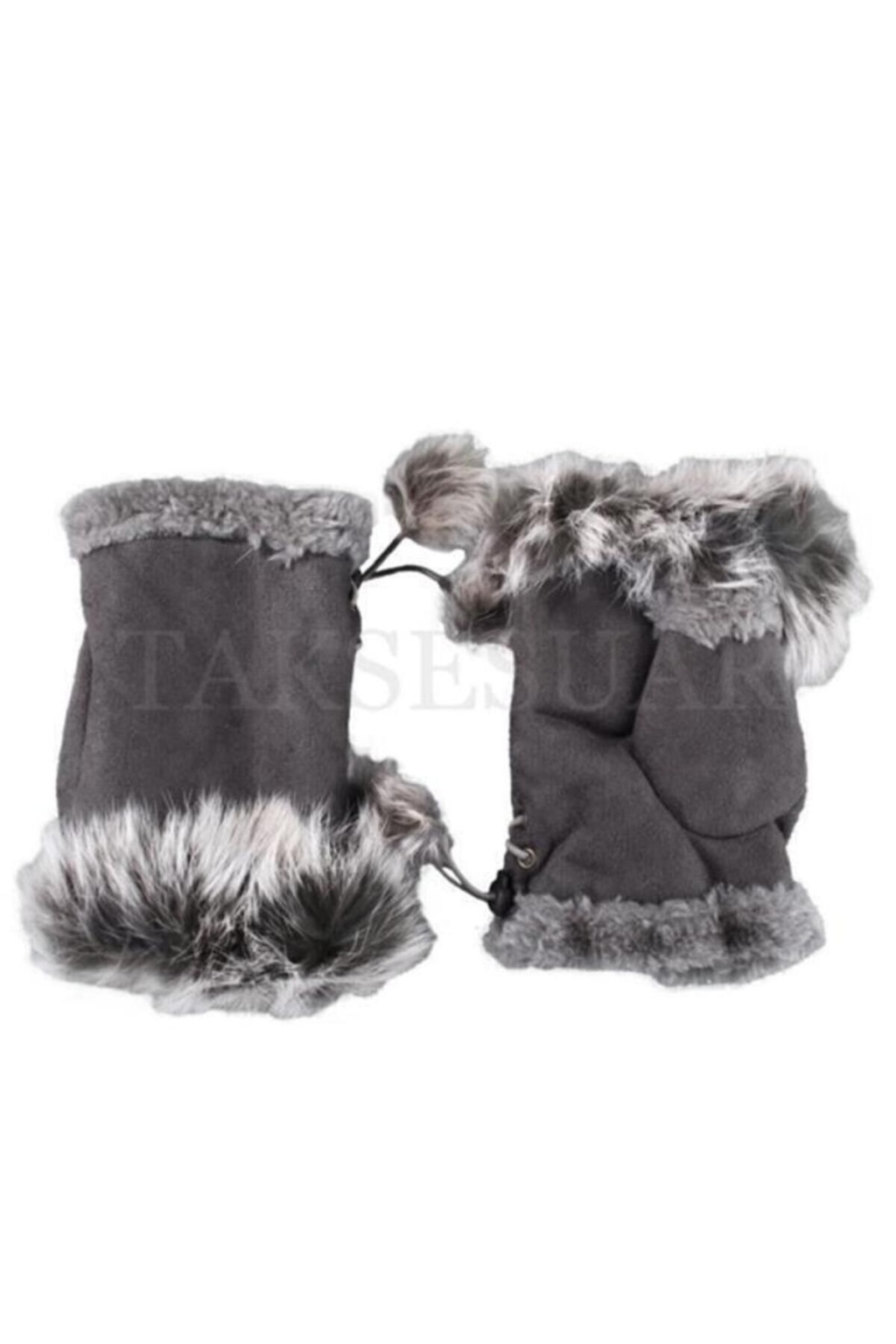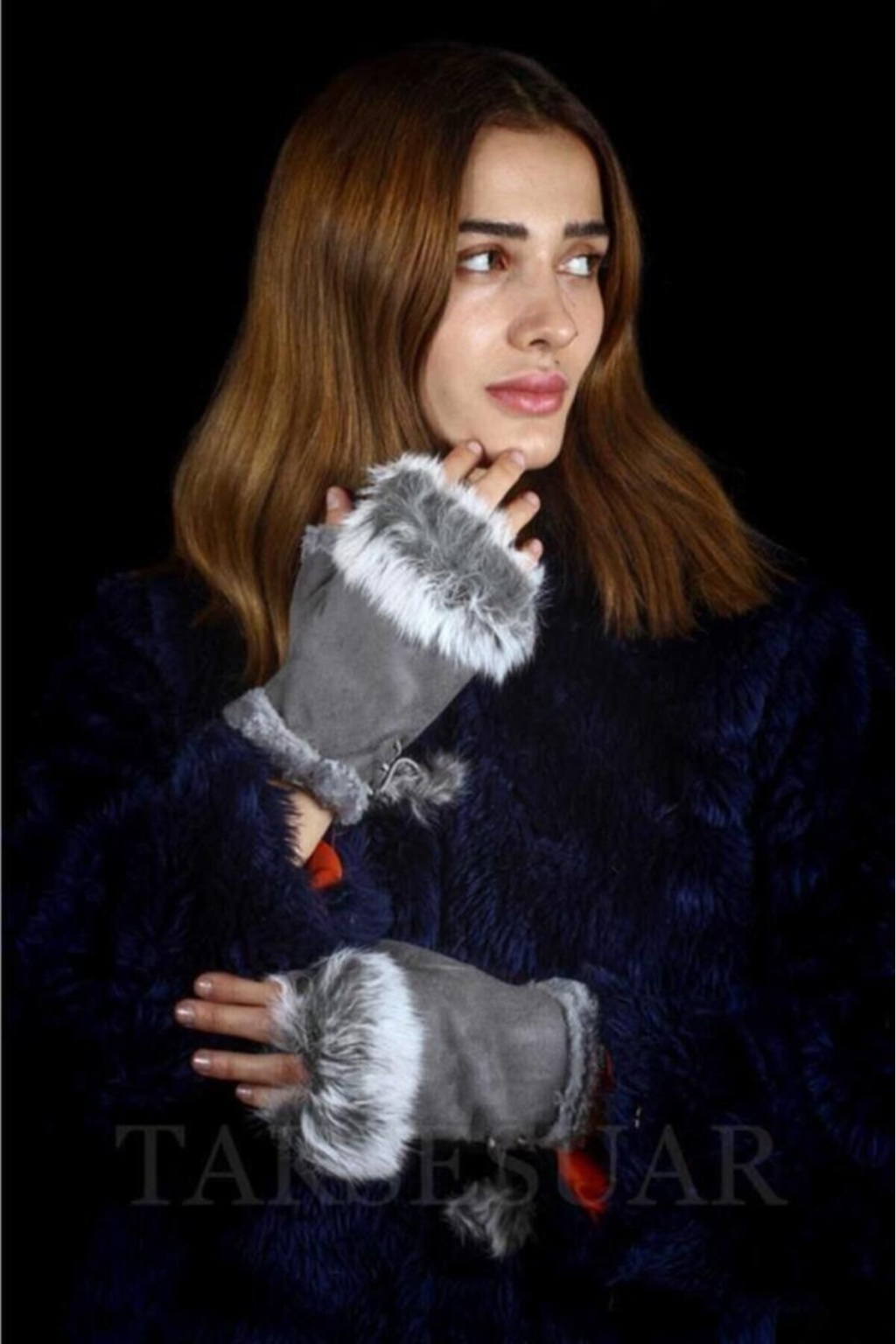 Kadın Eldiven Parmaksız Tasarım Kenarları Tüylü Model Ayarlanabilir Beden