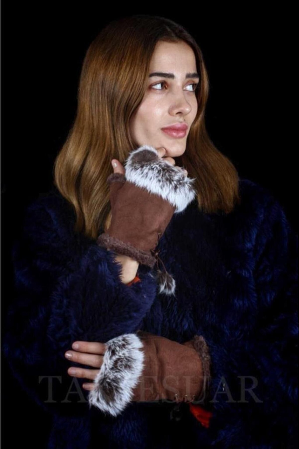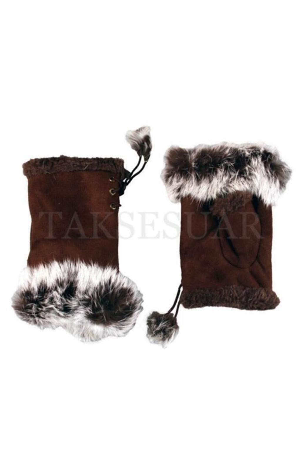 Kadın Eldiven Parmaksız Tasarım Kenarları Tüylü Model Ayarlanabilir Beden