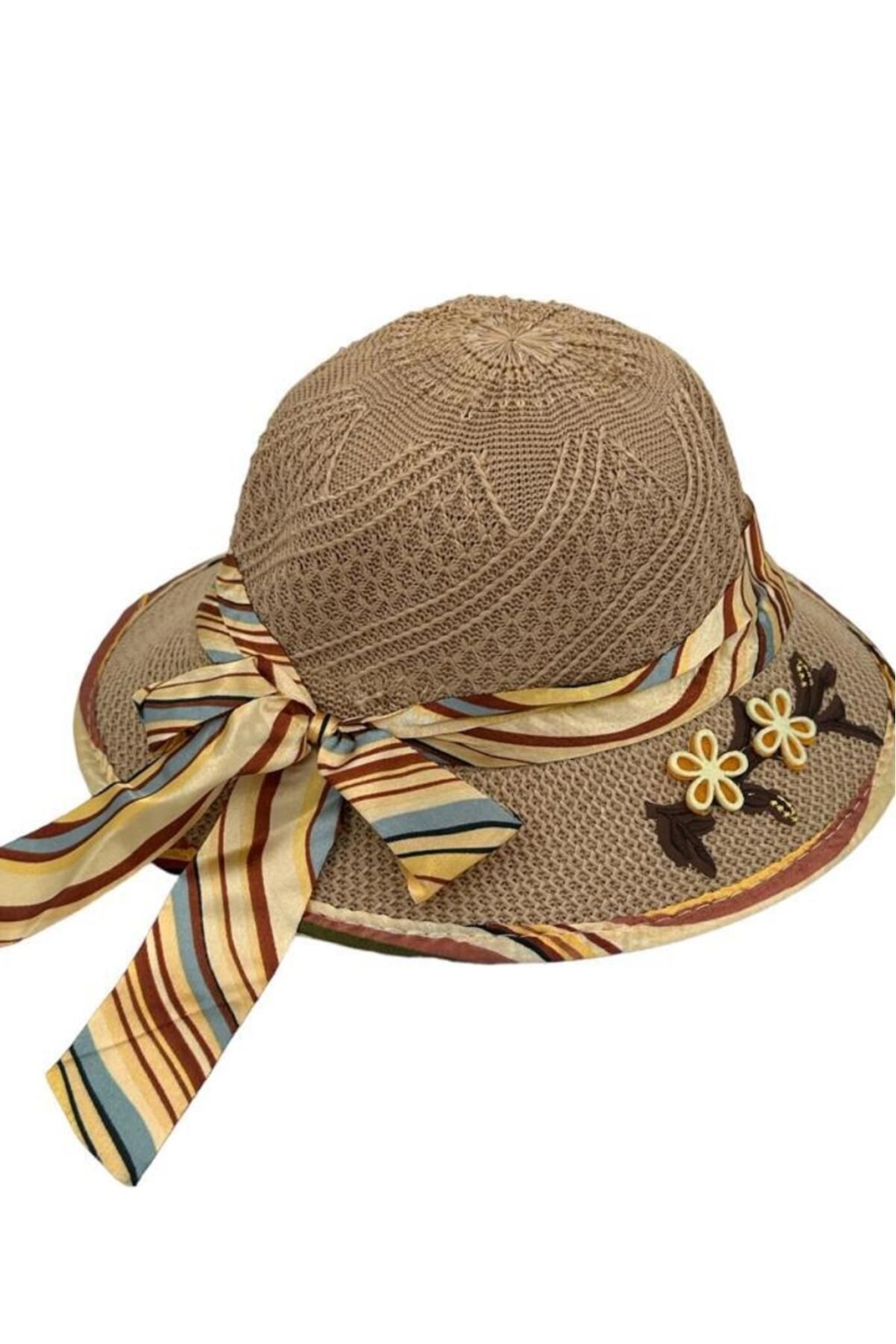 Kıds Kız Çocuk Şapkası Hasır Çiçek Figür Renkli Fiyonklu Model