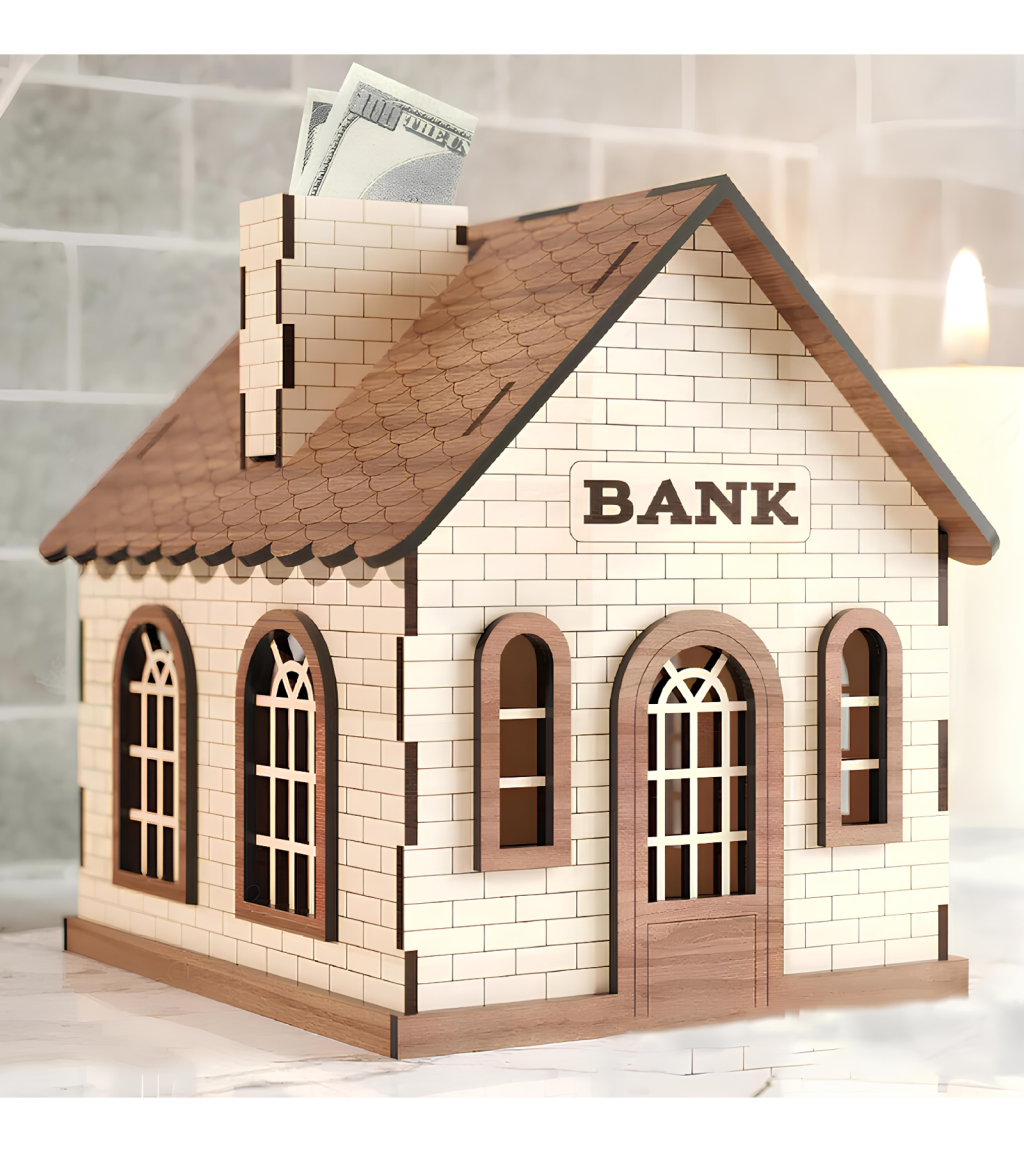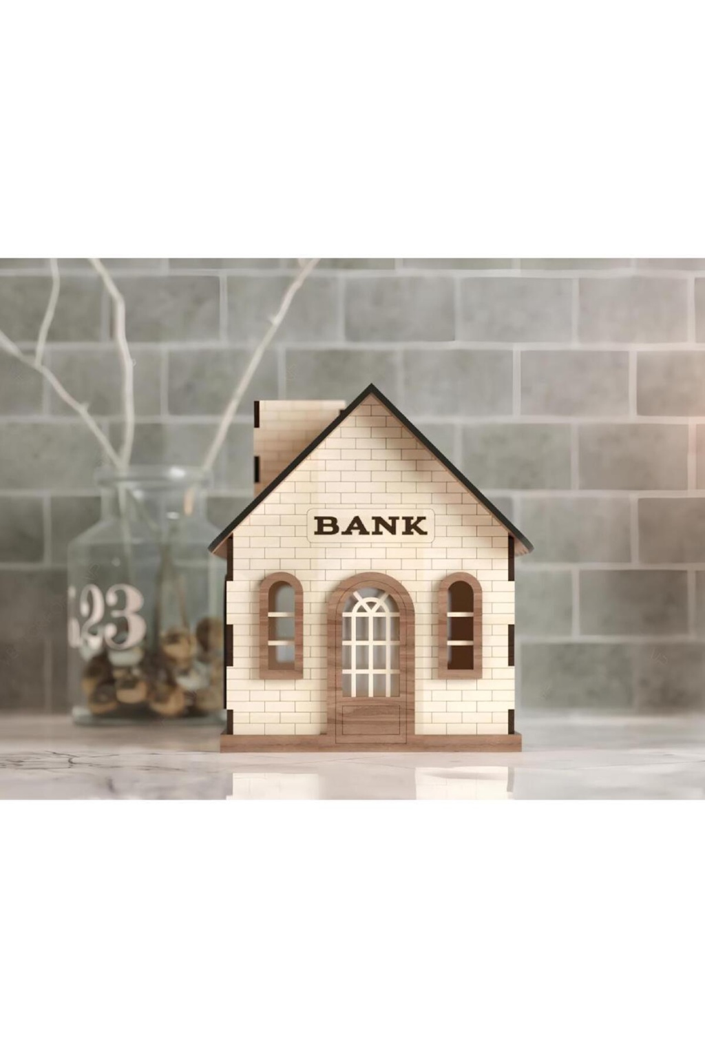 Kilitli Ahşap Ev Kumbara & Tip Box - Banka Görünümlü Bahşiş Kutusu Cafe Restoran Para Sandığı