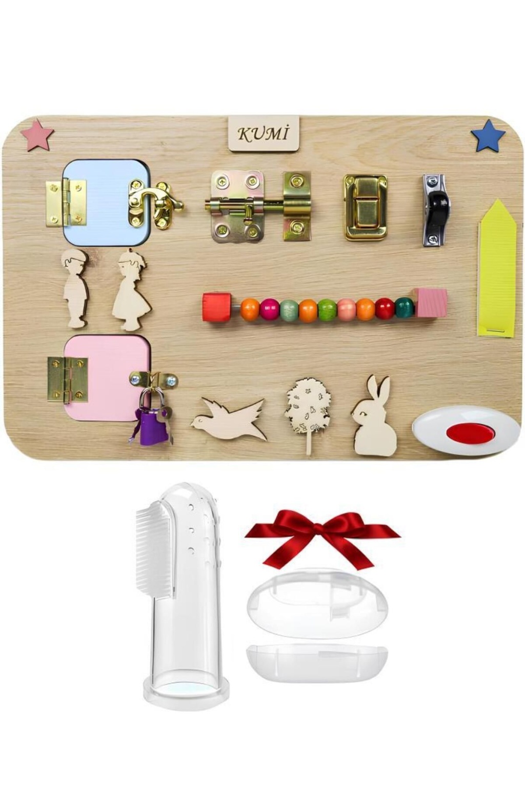 Montessori Aktivite Tahtası Beyin Zeka Gelişimi Ince Motor Eğitici Oyuncak Diş Kaşıyıcı Hediyeli