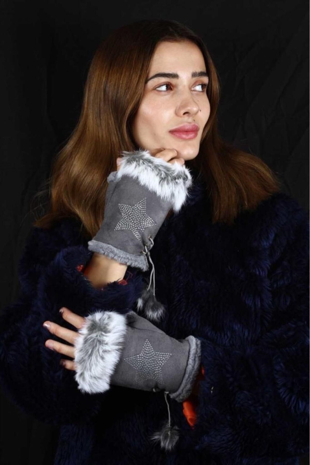Parmaksız Tasarım Yıldız ve Parıltı Taşlı Kadın Eldiven Ayarlanır