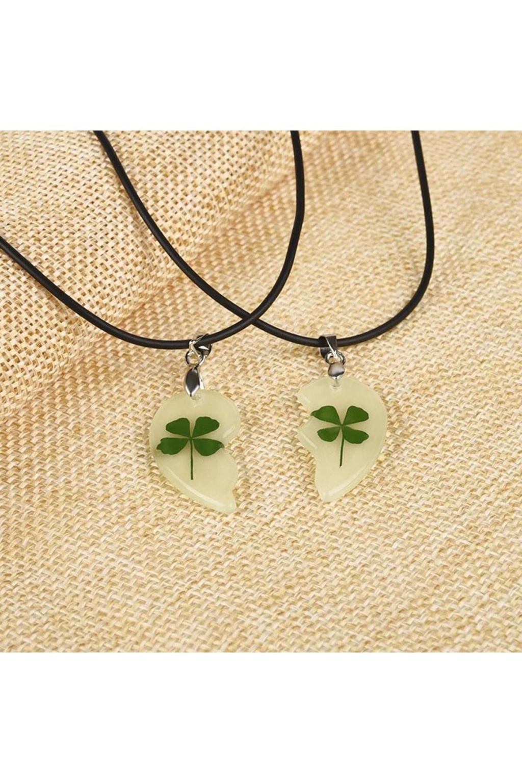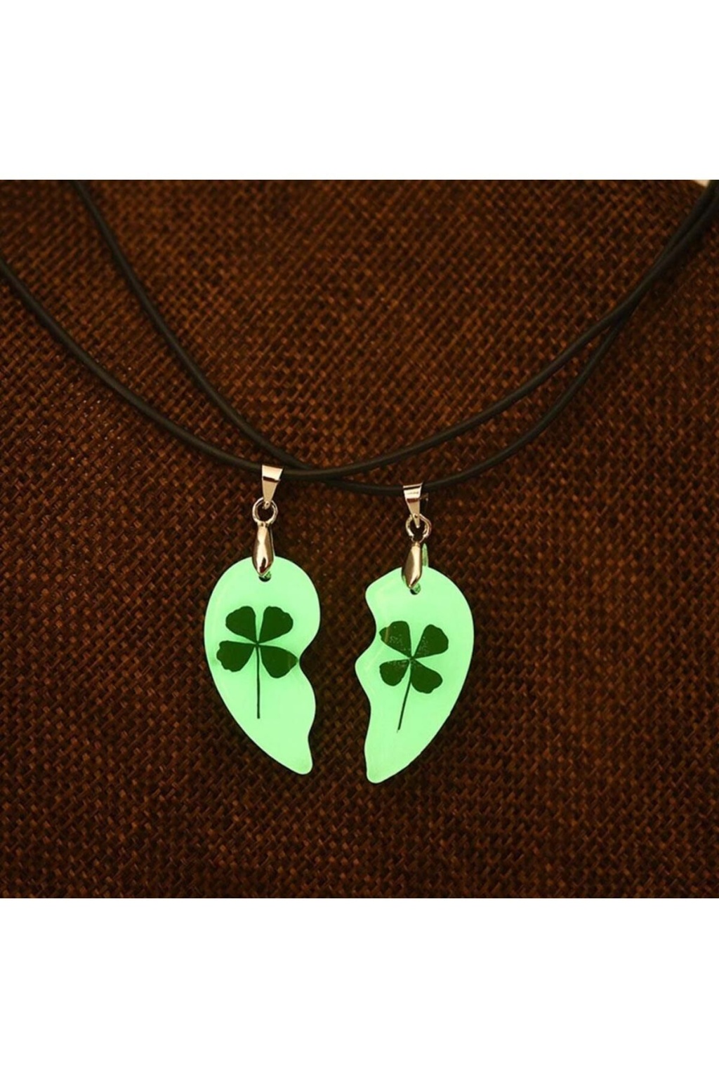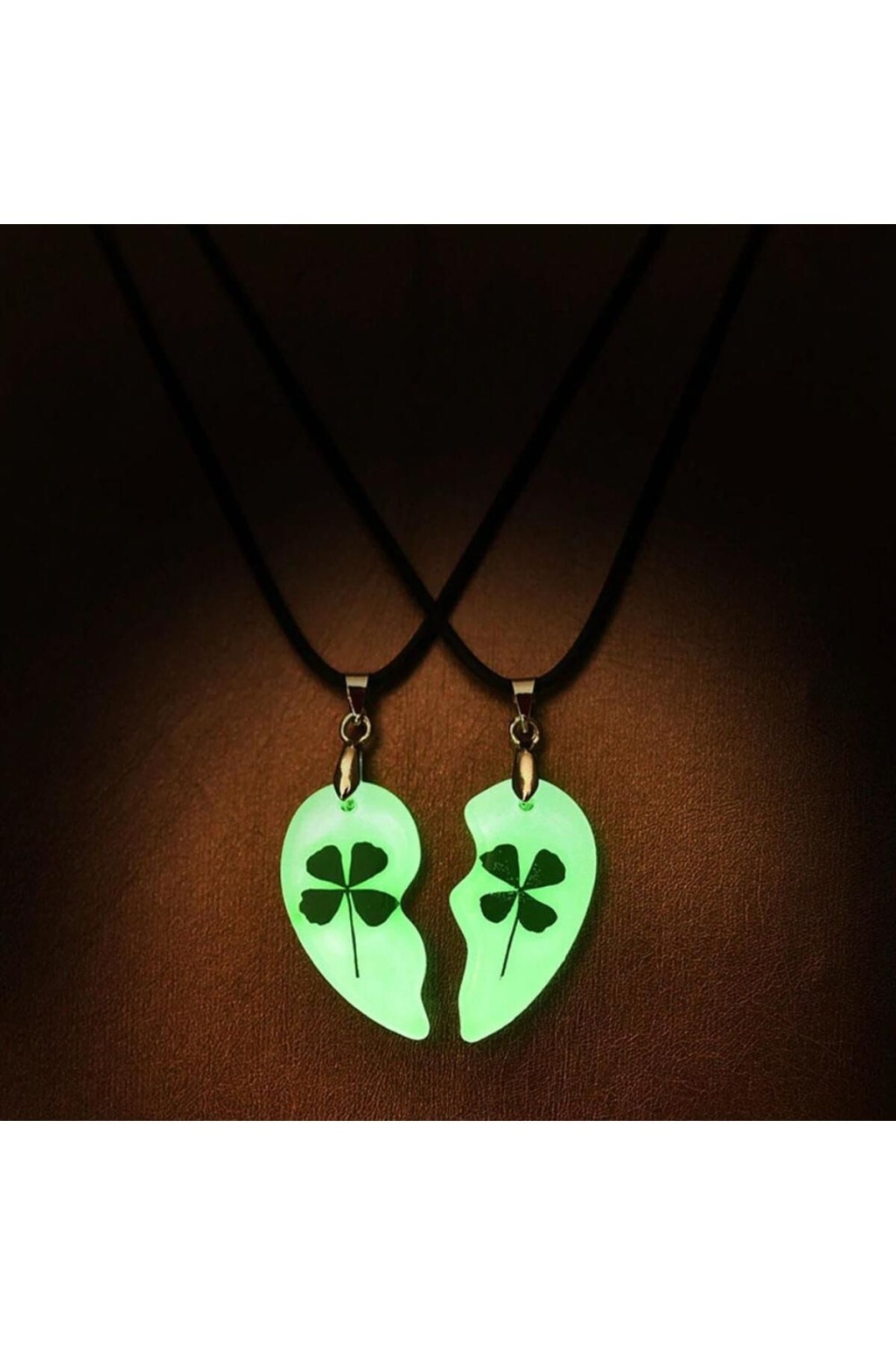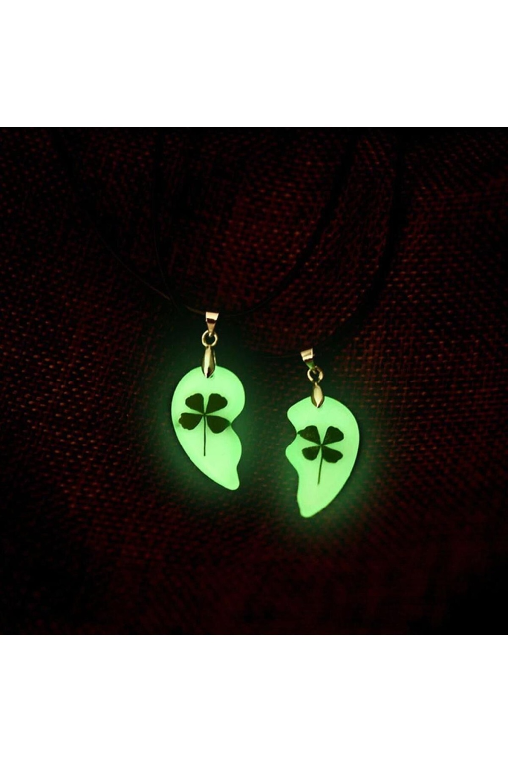 Sevgililer Için Karanlıkta Parlayan Fosforlu Yonca Kalp Kolye Sevgililer Günü Hediyesi